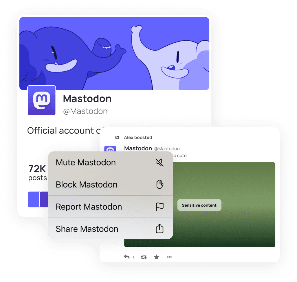 Mastodon puts decision making back in your hands. Each server creates their own rules and regulations, which are enforced locally and not top-down like corporate social media, making it the most flexible in responding to the needs of different groups of people. Join a server with the rules you agree with, or host your own.